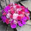 | 製品名 | ピンクバラ×ピンク胡蝶蘭 ラウンドアレンジ |